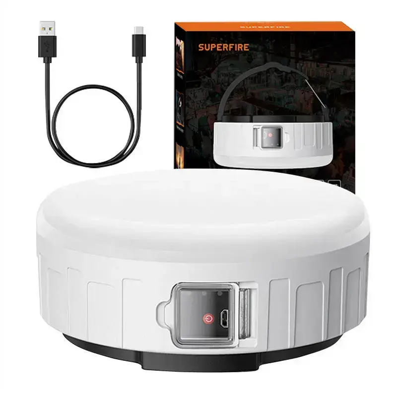 The compact camping light by Superfire is perfect for any camping trip and more. You will also use it in case of a power outage, car repair, etc. You can easily hang it in your tent using the hook attached to it. The light generated by it does not irritate your eyes. The accessory also consumes little power and is waterproof. An indicator will notify you of the battery level, and you can renew its energy with a mains charger, powerbank, etc. The power button and USB charging port (Universal Serial Bus, an interface used for powering and charging electronic devices, as well as for data transfer) are covered with a transparent cover to protect it from moisture.