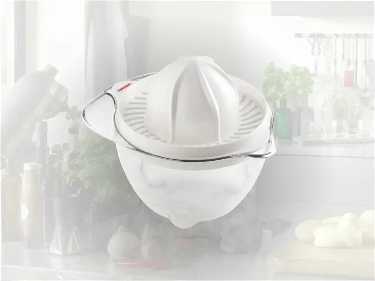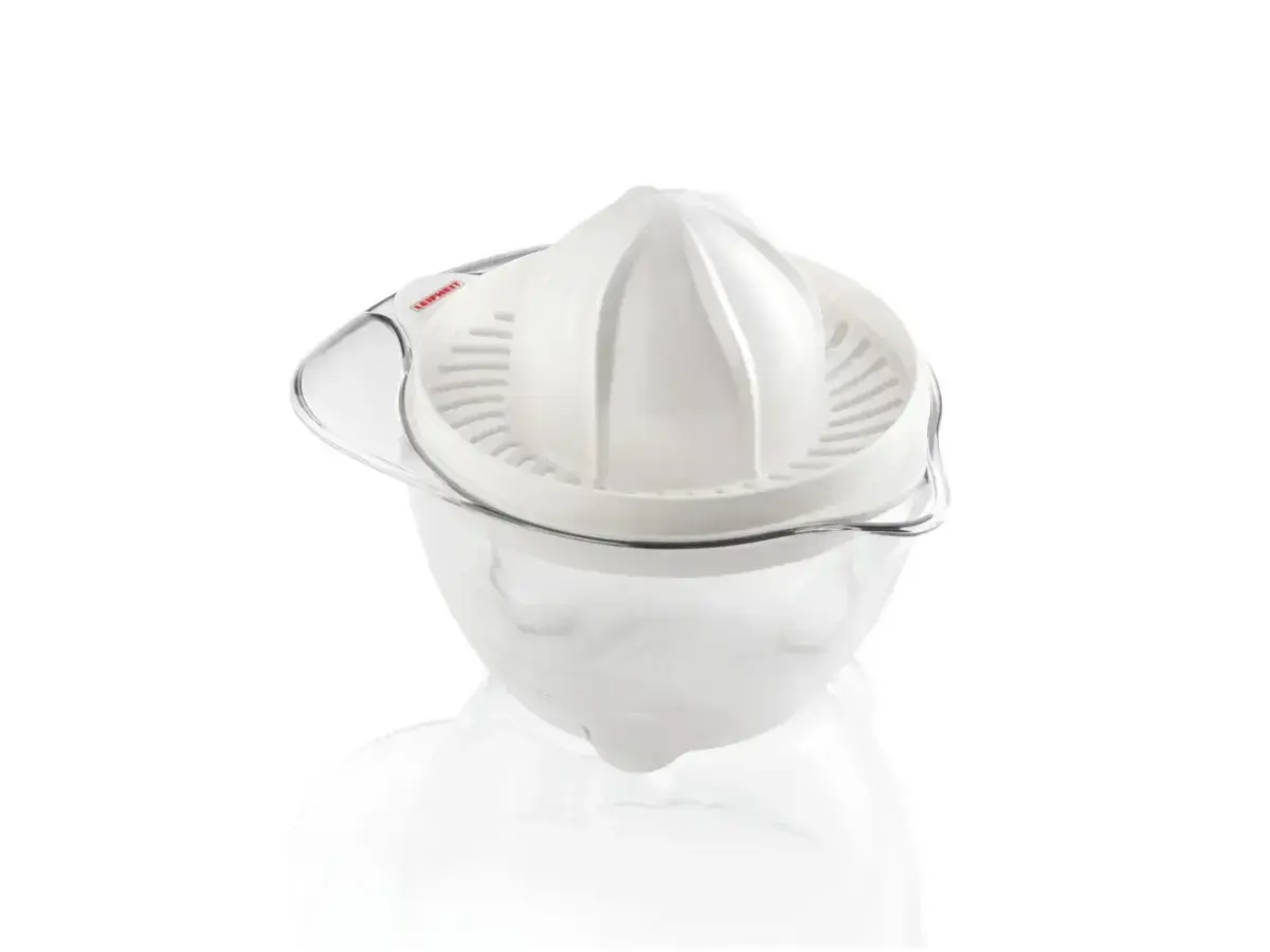 With double nozzle for squeezing larger and smaller citrus fruits. Handy container for collecting juice with measuring scale and spout. Easy to maintain.