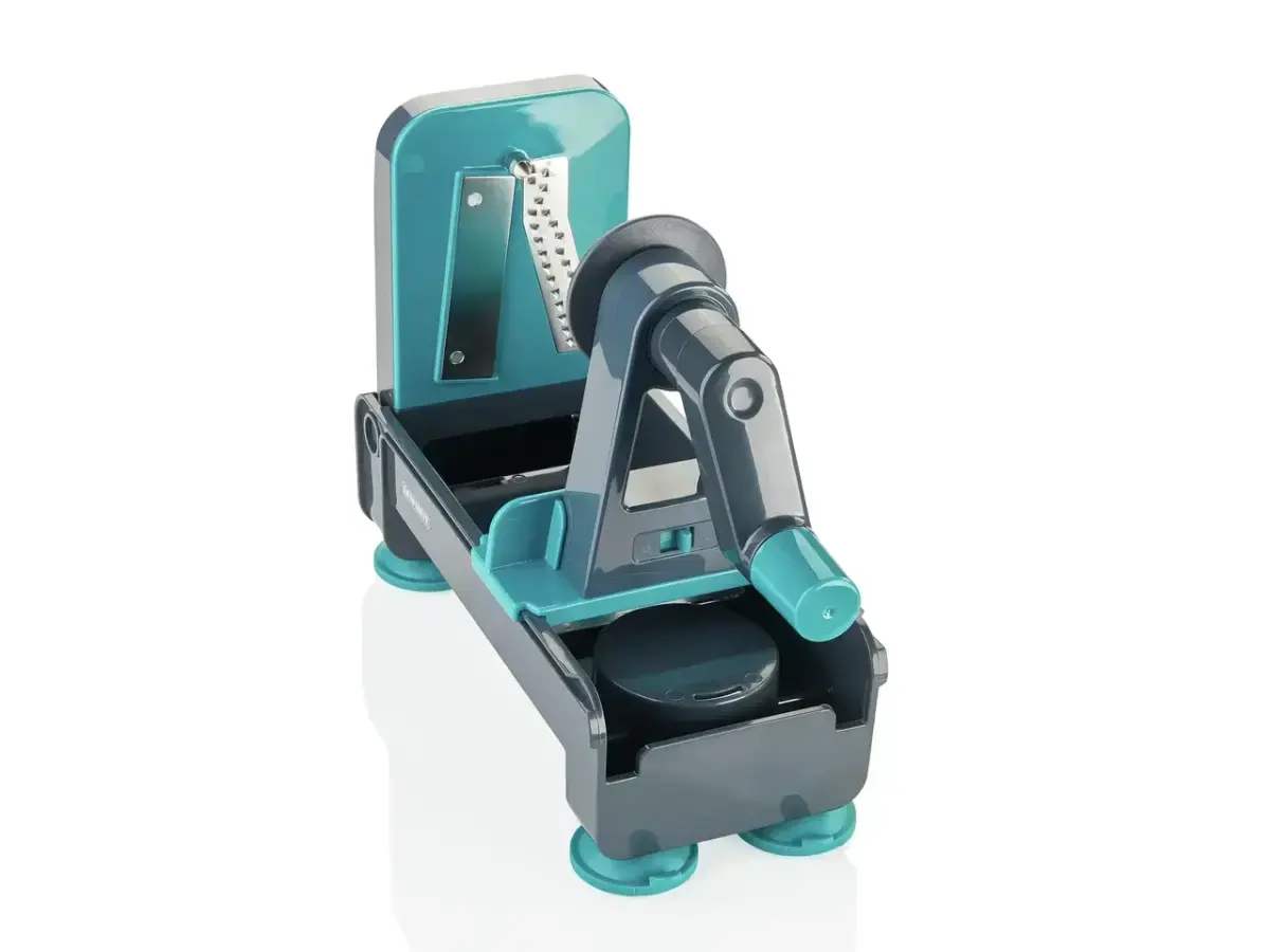 The device has a practical and simple folding mechanism that will be compact and take up little space when stored. The spiral slicer is not only suitable for narrow and long vegetables, but also for wide vegetables and fruit such as beetroot.