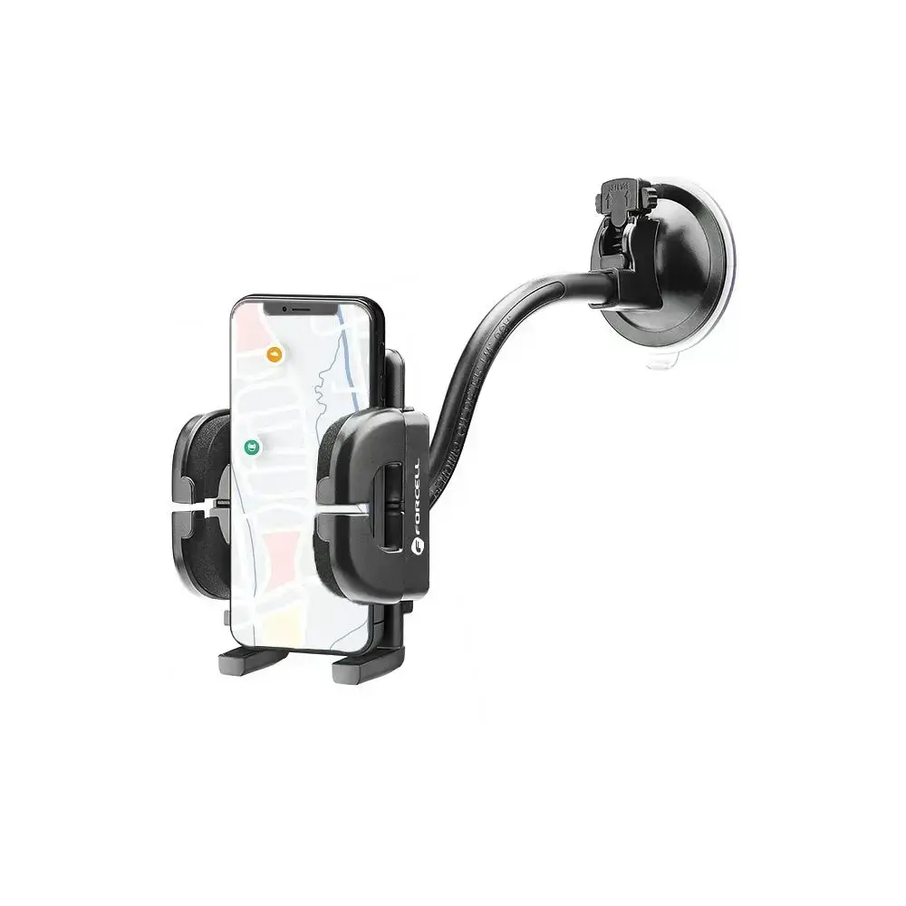 The Forcell Regular car holder is a practical accessory that will allow you to comfortably and safely use a smartphone while driving. Extendable clamps with wide spacing and a 17 cm long arm enable adjustment to individual needs. A 2-in-1 product with air vent and windshield mounting.