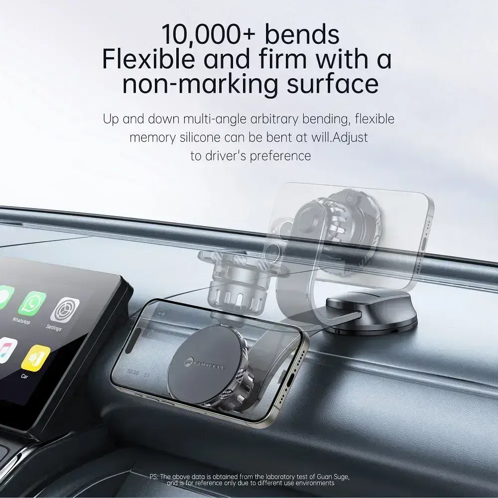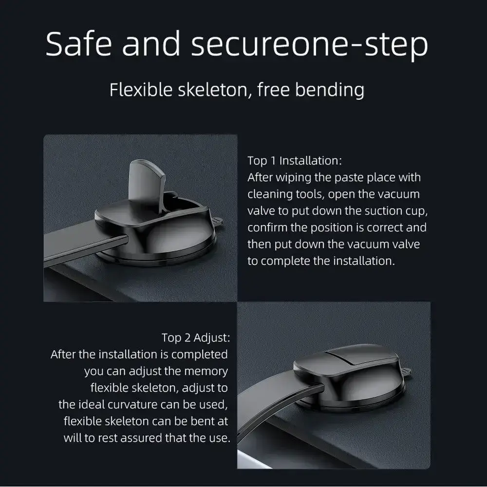 Freely adjustable magnetic car holder - the flexible arm remembers the position you set, ensuring a smooth and comfortable journey. It can be mounted in two different ways: to the windscreen or dashboard. The holder allows you to use your smartphone comfortably and safely while driving.