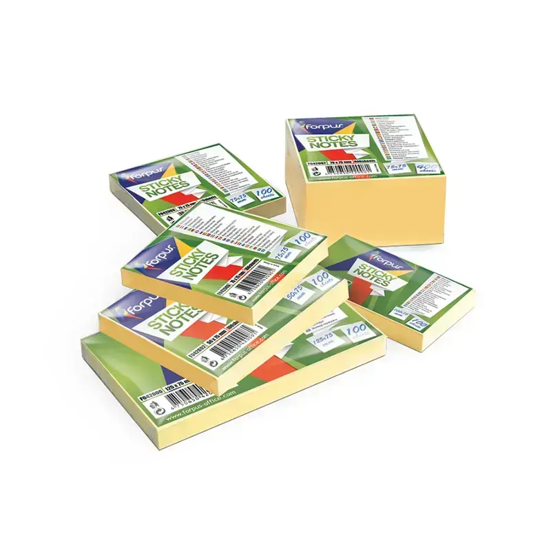 Piezīmju līmlapiņu kubs FORPUS ar izmēru 75x75mm, dzeltenā krāsā, 400 lapiņas