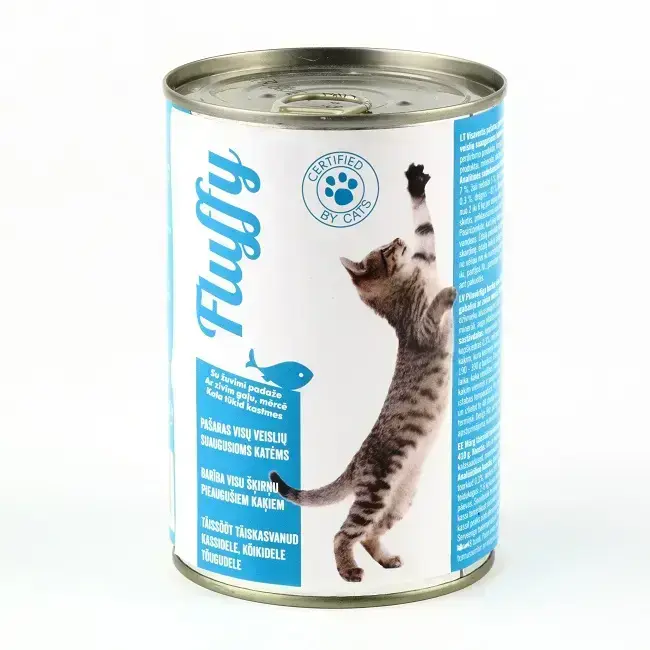 Konservi kaķiem FLUFFY, ar zivīm, 410g