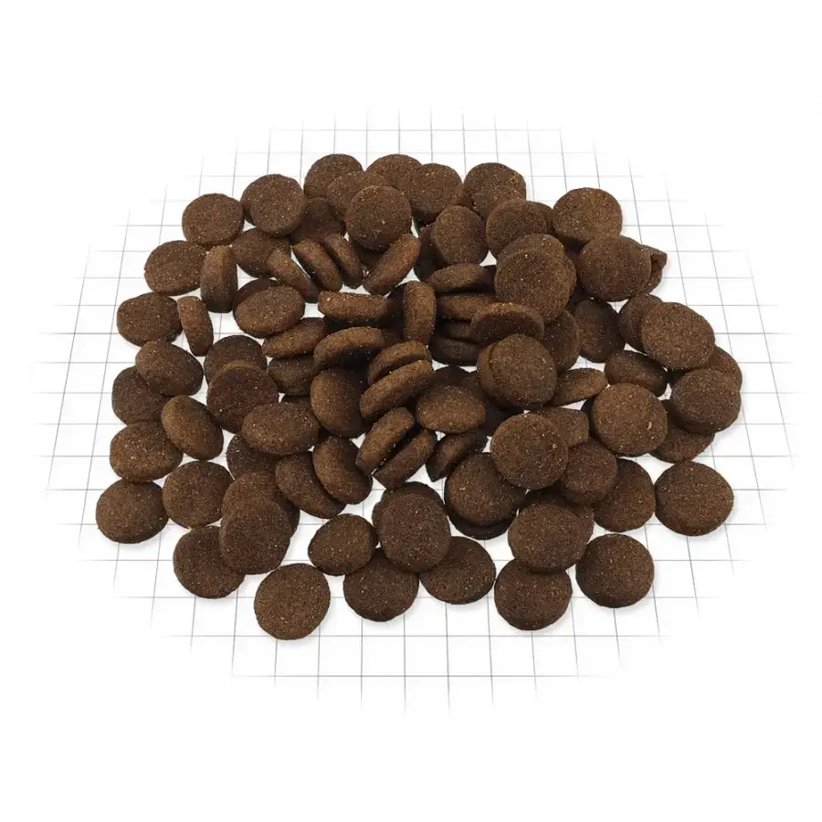 Sastāvs: Žāvēta jēra gaļa (23 %), rīsi (22 %), rīsu klijas (9 %), vistas tauki (7 %), žāvēta tītara gaļa (6 %), zirņi (5 %), žāvēti āboli, alus raugs, zivju eļļa, žāvēti burkāni, glikozamīns (310 mg/kg), hondroitīna sulfāts (190 mg/kg), mananoligosaharīdi (180 mg/kg), fruktooligosaharīdi (120 mg/kg), jūraszāļu, fenheļa, timiāna, kanēļa, anīsa, krustnagliņu maisījums, rozmarīns un juka (120 mg/kg). Analītiskais sastāvs: Kopproteīns 25 %, koptauki 13 %, mitrums 10 %, koppelni 7,5 %, kopšķiedra 3 %, kalcijs 1,3 %, fosfors 0,92 %, nātrijs 0,3 %, magnijs 0,1 %. Uzturfizioloģiskās piedevas uz 1 kg: A vitamīns (3a672a) 20000 SV, D3 vitamīns (3a671) 2000 SV, E vitamīns (3a700) 144 mg, B1 vitamīns (3a820) 7 mg, B2 vitamīns 9 mg, B6 vitamīns (3a831) 3 mg, B12 vitamīns 0,04 mg, cinks (3b603) 132 mg, dzelzs (3b103) 120 mg, mangāns (3b502) 47 mg, jods (3b201) 0,7 mg, varš (3b405) 18 mg, selēns (E8) 0,17 mg, omega 3 0,26 %, omega 6 1,65 %, antioksidanti (augu eļļas tokoferola ekstrakts (1b306) un rozmarīna ekstrakts), dabiski aromatizētāji.