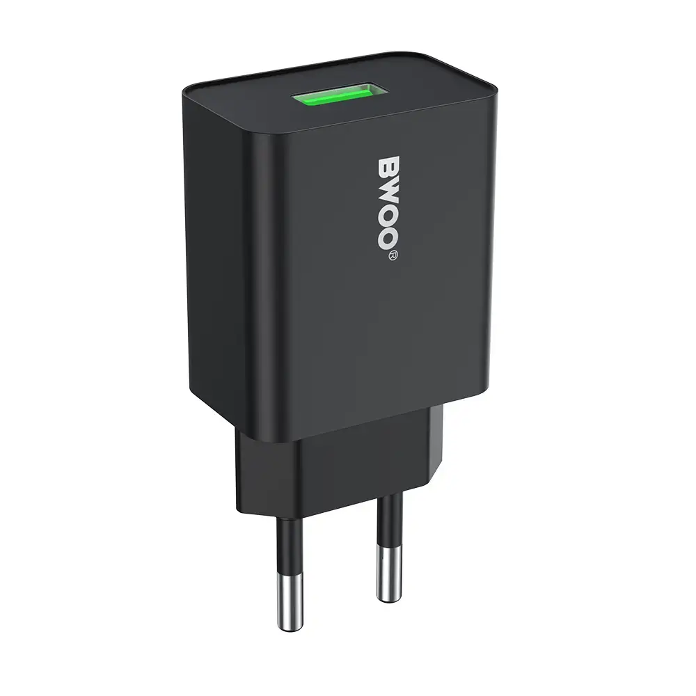The USB-A 12W wall charger combines safety and efficiency thanks to its construction from fire-resistant ABS/PC material, which ensures high temperature resistance and durability during everyday use at home or while traveling. Smart voltage management automatically adjusts the output power to the connected device, optimizing charging speed and energy efficiency. Built-in protections shield against overheating, overcharging, and short circuits, ensuring safety for both devices and the charger itself. The universal input of 100-240V allows for hassle-free use worldwide, guaranteeing reliable charging while traveling.