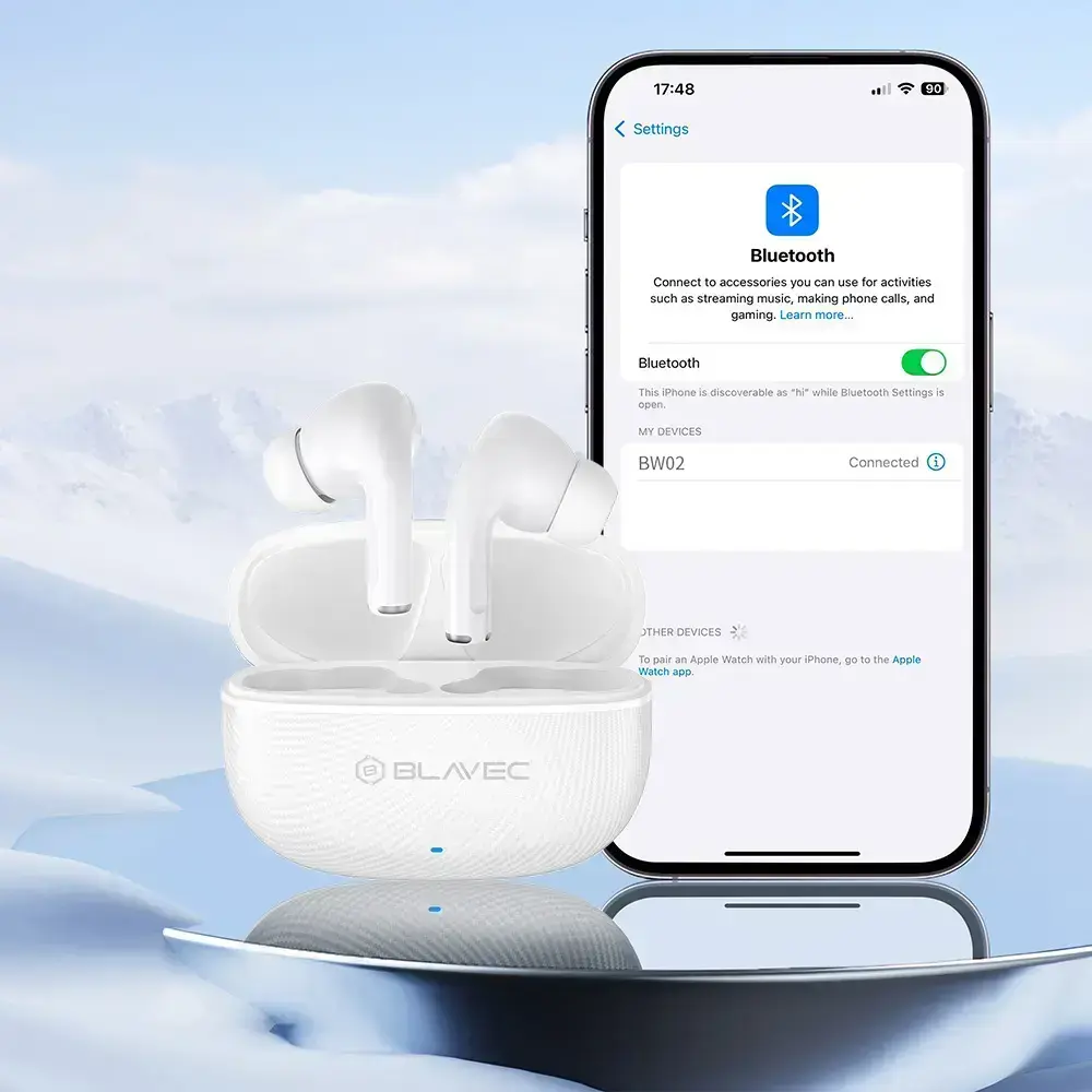 Blavec TWS BW-02 Carbon – Wireless TWS earbuds combining clear sound, modern Bluetooth connectivity and a stylish carbon-inspired design.