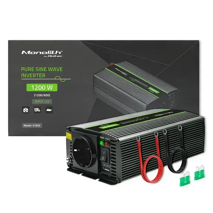 Qoltec Pure Sine Wave Inverter Monolith| 600W | 1200W | 12V to 230V