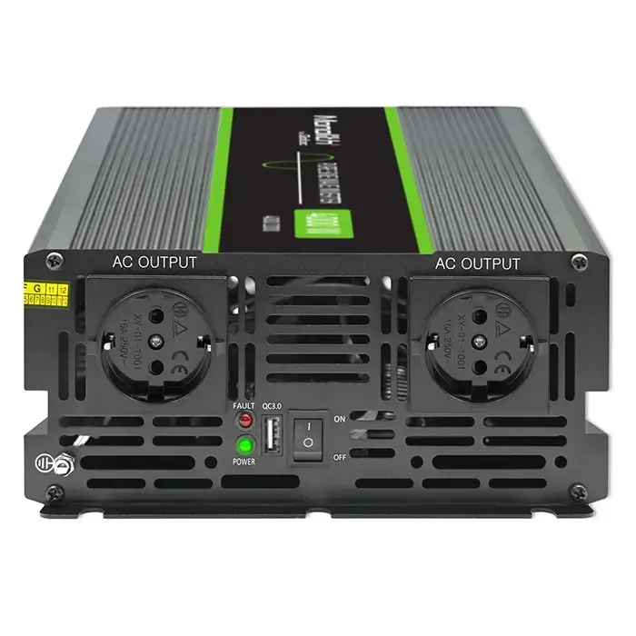 The Qoltec inverter is a device that changes the 24 V direct voltage from the car installation to 230 V alternating voltage. It is ideal where there is no direct access to the power grid . The product has built-in mains sockets compatible with European plugs and a USB port.