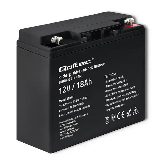 Qoltec AGM battery | 12V | 18Ah | Maintenance-free | Efficient| LongLife | for UPS, scooter