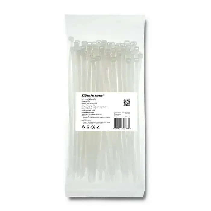 Qoltec Self-locking cable tie | 4.8*200mm | 100 pcs. | Nylon66 | UV | White