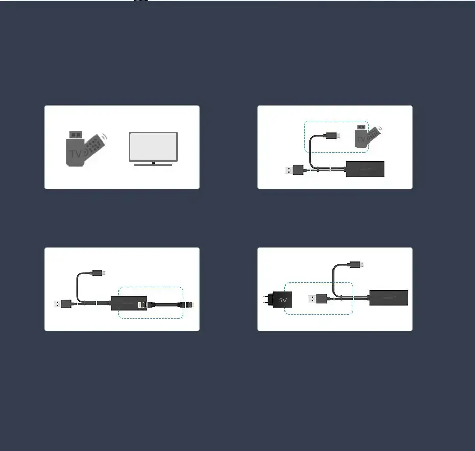 Шаг 2: Подключите разъем Micro USB к Chromecast/TV Stick. Убедитесь, что разъем Micro USB плотно вставлен в Chromecast/TV Stick.Шаг 3: Подключите Ethernet-кабель к порту RJ45 этого Ethernet-адаптера для Chromecast.Шаг 4: Подключите USB-кабель к источнику питания переменного тока.Шаг 5: Наслаждайтесь работой Chromecast.