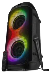Konfigurācija: Nav norādīts, Jauda (RMS): 100 W, Frekvenču diapazons: 40 - 22000 Hz, FM radio: Ir, Bezvadu savienojumi: Bluetooth, USB: Ir, 3.5 mm (AUX): Nav zināms, Micro SD: Ir, Akumulatora darbības laiks (h): Nav norādīts, Garantija: 2 gadi