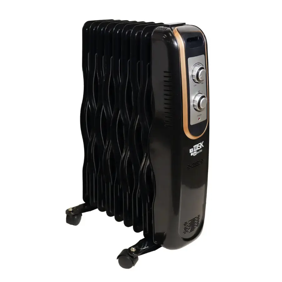 Besk eļļas radiators nodrošina uzticamu un efektīvu telpu apsildi, apvienojot jaudīgu darbību ar modernu melnu dizainu un viļņotu sekciju konstrukciju, kas veicina ātrāku siltuma izplatīšanos. Ierīce piedāvā trīs sildīšanas režīmus, kas ļauj pielāgot temperatūru dažāda lieluma telpām, savukārt automātiskā termostata kontrole palīdz uzturēt stabilu mikroklimatu un optimizēt enerģijas patēriņu. Aizsardzība pret pārkaršanu un skaidri redzams strāvas indikators nodrošina drošu un ērtu lietošanu ikdienā. Stabilie ritentiņi atvieglo pārvietošanu, padarot radiatoru par praktisku risinājumu mājai vai birojam. Jauda 2000 W, 9 sekcijas, spriegums 220 V / 50 HZ, pievadvada garums 1.4 m, izmērs 126 x 565 mm.