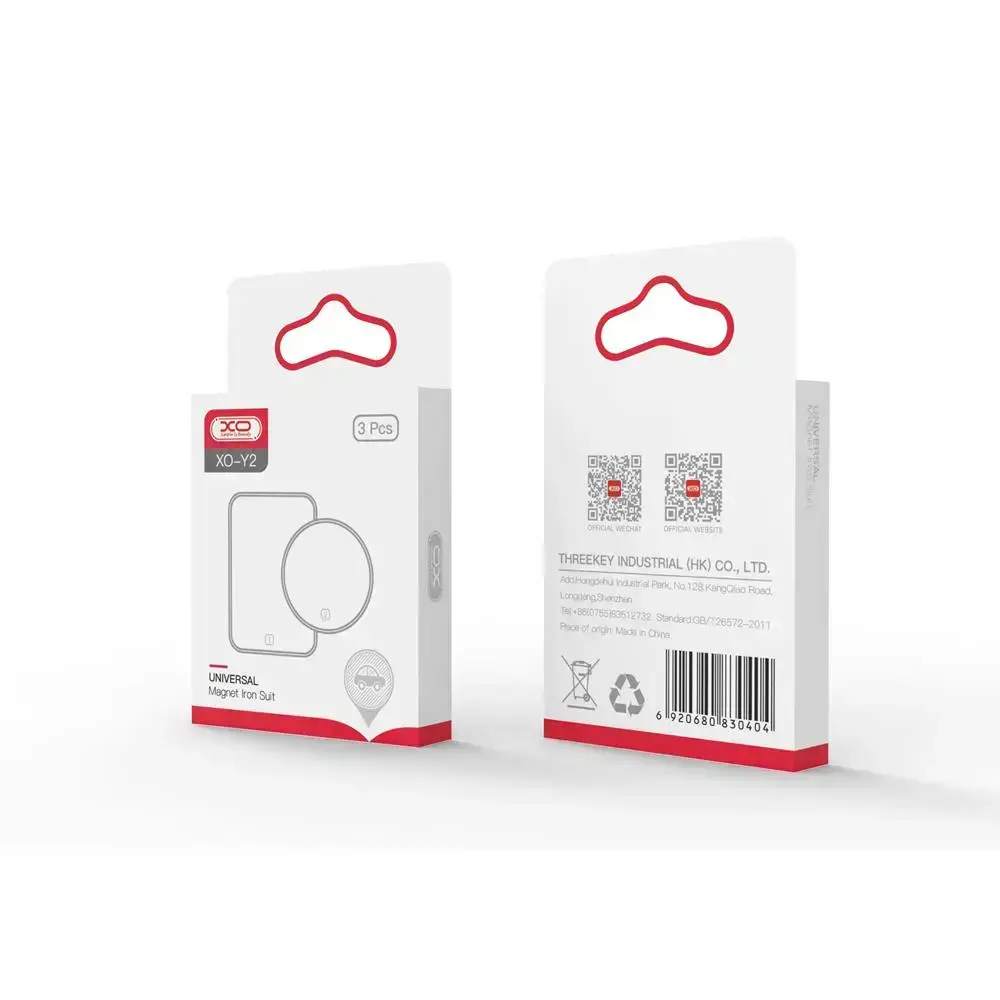 XO Y2 is a set of one rectangular and 2 round metal plates that, when glued to the phone casing or case, allow the use of magnetic car holders.