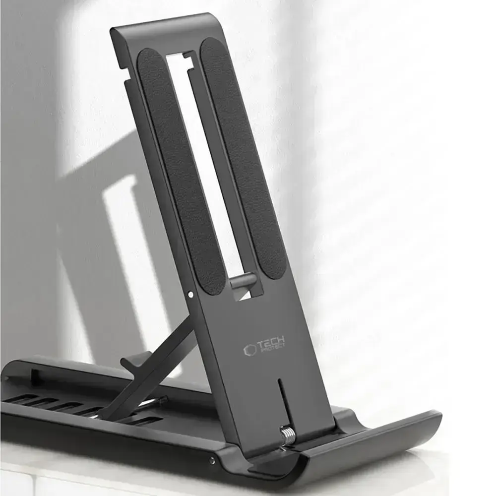 Tech-Protect Z5 to solidny, uniwersalny stojak przeznaczony do smartfonów, tabletów oraz innych urządzeń mobilnych. Wykonany z wytrzymałego aluminium i tworzywa sztucznego, zapewnia stabilność oraz trwałość podczas codziennego użytkowania. Dzięki składanej konstrukcji oraz możliwości regulacji kąta nachylenia, idealnie sprawdza się zarówno w domu, jak i w biurze czy podróży.