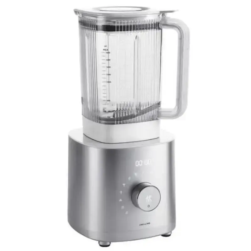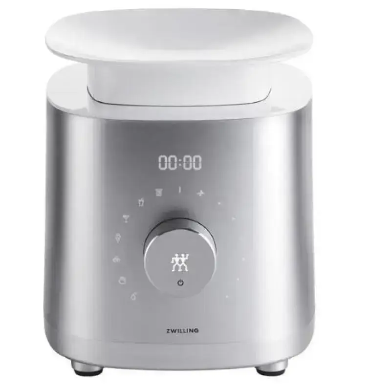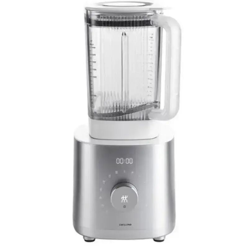 Wir haben den Standmixer zum Ritter geschlagen. Der Hochleistungsstandmixer Pro ist das Flaggschiff aus der ZWILLING ENFINIGY Serie. Sein sehr leiser und verschleißarmer Gleichstrommotor ist besonders langlebig und sehr leistungsstark. Durch die eingebaute Sicherheitsfunktion lässt sich der Hochleistungsmixer nur mit Deckel betreiben – so besteht keine Verletzungsgefahr. Mit dem intuitiv zu bedienenden Drehknopf können 7 Automatikprogramme (Pulse, Smoothie, Cocktail, Eiscreme, Eiscrusher, Suppe und Reinigung) und 12 Geschwindigkeitsstufen des Power Blenders ausgewählt werden. Auch Shakes, Dips, Saucen und vieles mehr können so mit der idealen Geschwindigkeit zubereitet werden. Eine integrierte Waage mit Tara-Funktion macht das Abwiegen von Zutaten zum Kinderspiel und die in Solingen entwickelte und hergestellte zweiflügelige ZWILLING Klinge mit speziellem Wellenschliff und Piranha-Zahnung sorgt für müheloses, gleichmäßiges Zerkleinern. Der 1,8-Liter-Mixbehälter aus BPA-freiem Tritan ist bruchfest und kälte- sowie hitzebeständig – die Reinigung per Hand oder ganz einfach mit dem integrierten Reinigungsprogramm wird empfohlen. Auch die Oberflächen des Profi-Blenders sind durch das moderne One-Button-Design mit integriertem Display leicht zu reinigen. Das passende Zubehör ist bereits enthalten: Ein Messbecher, eine Wiegeschale und ein hochwertiger Stampfer mit integriertem Thermometer und Display ergänzen den Hochleistungsstandmixer Pro.