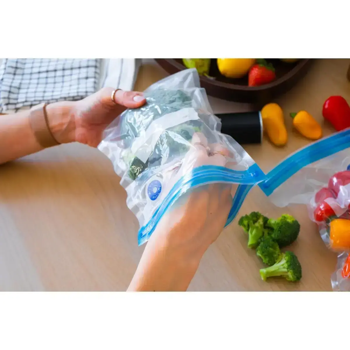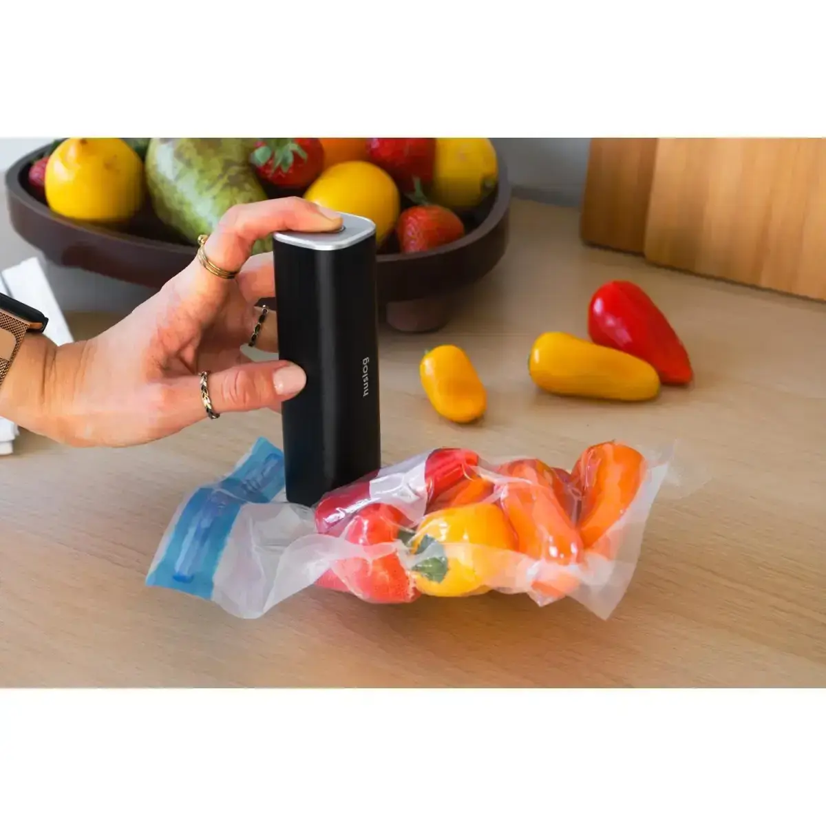The wireless vacuum pump Huslog is a compact, handy and extremely practical solution that allows for quick and effective vacuum packing of food. With its strong suction power, the device efficiently removes air, helping to keep food products fresh for up to five times longer. The pump fits in the hand and takes up little space, making it ideal for any kitchen and convenient for travel. Equipped with a large lithium-ion battery, it operates for a long time on a single charge and allows for packing many bags without the need to connect to power. The device can be charged via a universal USB-C or USB-A connection, meaning it can be charged from a laptop, power bank, or even in a car. The intuitive operation is limited to placing the pump on the bag valve and turning it on – the vacuum is created automatically. The package also includes zip bags 21x22 cm (5 pieces), ready to use immediately after unpacking. This convenient and hygienic solution allows for better organization of space in the refrigerator and freezer and effectively prevents food waste.