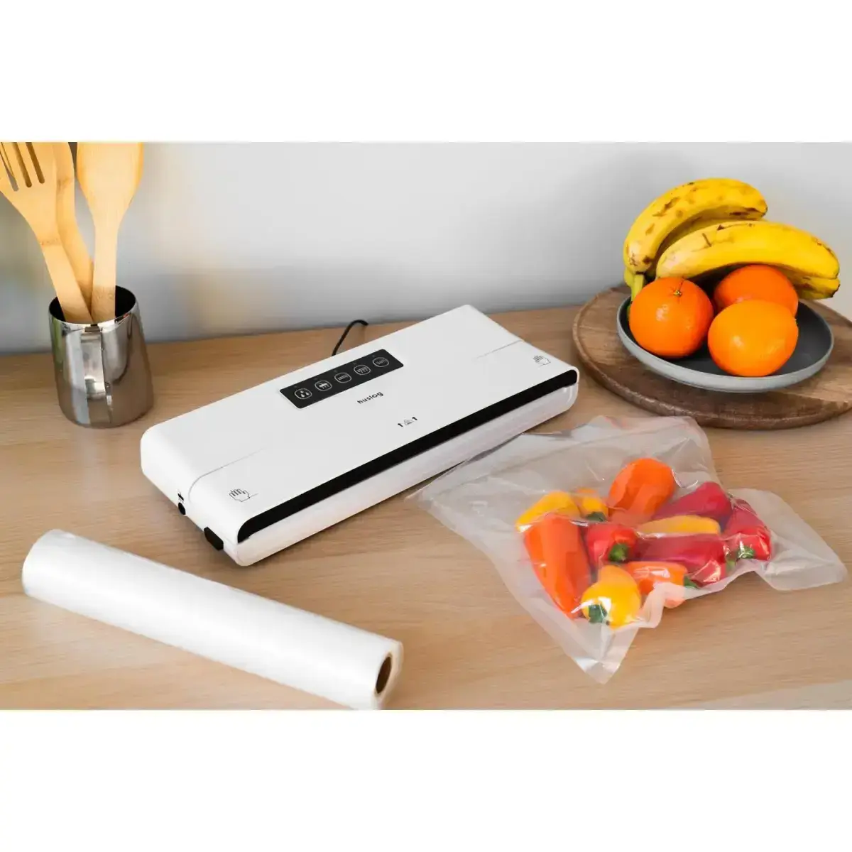 Huslog vacuum sealer rolls measuring 28x500 cm are a reliable and practical solution for vacuum packaging even large portions of food – from meats to fish. With the possibility of individual cutting, the film allows you to customize the packaging to any product size, ensuring maximum convenience and efficiency. The vacuum packaging technology protects food from bacteria and mold, effectively prolonging its freshness by up to five times. The high sealability of the film guarantees a reliable seal when sealing, protecting products from loss of nutritional value and taste. Moreover, the film also performs well during sous-vide cooking at temperatures up to 100°C – allowing the aroma and delicate structure of the dishes to be preserved. The set includes 3 rolls of 5 meters each, providing a total of 15 meters of film for use. The product is compatible with the Huslog AK-5334 sealer, making it an ideal addition to any vacuum packaging set.