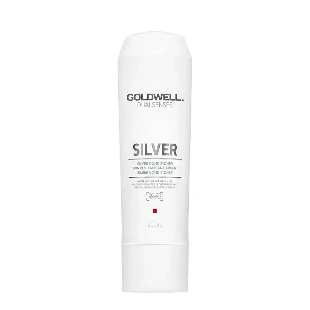 Blended with microPROtec complex and Luminescine, Goldwell Dualsenses Silver Conditioner helps to neutralise unwanted yellow tones and instantly refines a cool effect whilst detangling your hair. This innovative silver conditioner transforms non-visible UV light into visible light for luminosity and brilliant colour restuls. Ingredients: Water/Aqua/Eau, Cetearyl Alcohol, Isopropyl Myristate, Cetrimonium Chloride, Potassium Phosphate, DisodiummPhosphate, Panthenol, Ethylhexylglycerin, Lactic Acid, Glycerin, Sodium Hydroxide, Ethylhexyl Methoxycinnamate, Octyldodecyl PCA, Disodium Distyrylbiphenyl Disulfonate, Sodium PCA, Hydrolyzed Verbascum Thapsus Flower, Sodium Chloride, Tocopherol, Glycoproteins, Salix Nigra (Willow) Bark Extract, Phenoxyethanol, Sodium Benzoate, Potassium Sorbate, Fragrance/Parfum, Limonene, Linalool, HC Blue No. 12, Acid Blue 9, Acid Violet 43, CI 17200, CI 19140. | Goldwell Dualsenses Silver Conditioner 200Ml In Clear.