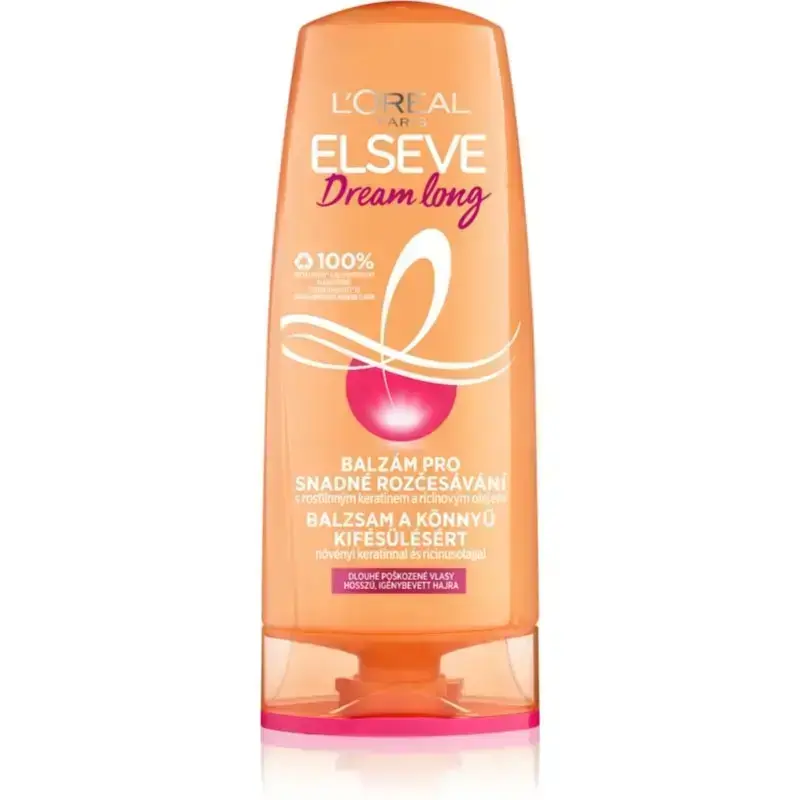 L’Oréal Paris Elseve Dream Long, 300 ml, Hair Balms for Women, During hair washing, shampoo opens the external hair structure - the cuticle. That's why it's important to give your hair a treatment after washing to reseal the cuticle. And that's exactly what the conditioner from L’Oréal ParisElseveDream Long takes care of. In addition to closing the hair fibre, it ensures its nourishment, hydration and softness, without which beautiful, shiny and healthy hair cannot do without. It will protect the hair from mechanical damage and dryness, as well as smooth the surface and help soften it, which will make it easier to detangle and further styling. Characteristics: makes untangling and styling easier protects hair against damage ensures brilliant shine How to use: Apply after first washing with shampoo. Leave to act for a while, then rinse thoroughly.
