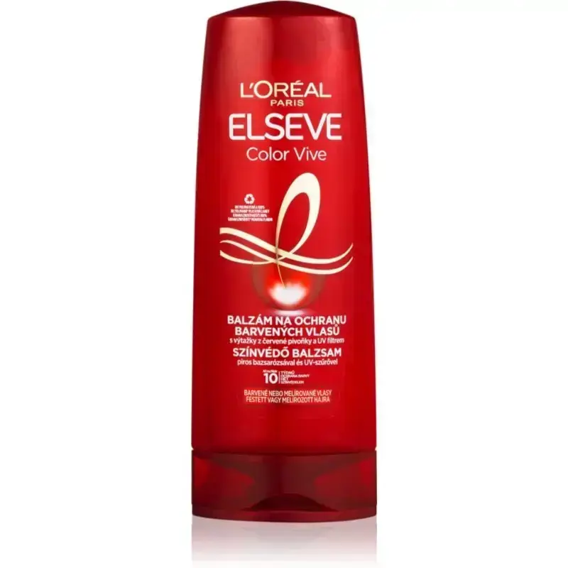 L’Oréal Paris Elseve Color-Vive, 300 ml, Hair Balms for Women, During hair washing, shampoo opens the external hair structure - the cuticle. That's why it's important to give your hair a treatment after washing to reseal the cuticle. And that's exactly what the conditioner from L’Oréal ParisElseveColor-Vive takes care of. In addition to closing the hair fibre, it ensures its nourishment, hydration and softness, without which beautiful, shiny and healthy hair cannot do without. It will protect the hair from mechanical damage and dryness, as well as smooth the surface and help soften it, which will make it easier to detangle and further styling. Characteristics: provides the necessary hydration intensifies hair colour seals the hair’s surface, making it more resilient How to use: Apply after first washing with shampoo. Leave to act for a while, then rinse thoroughly.