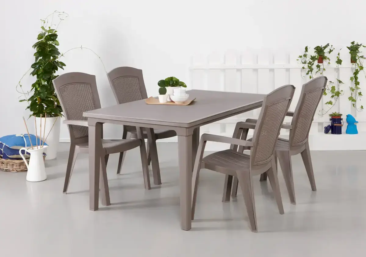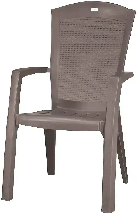 У него эргономичная спинка, но текстура стула аккуратно имитирует текстуру ротанга. Стул прост в уходе и устойчив к неблагоприятным погодным условиям и УФ-лучам.