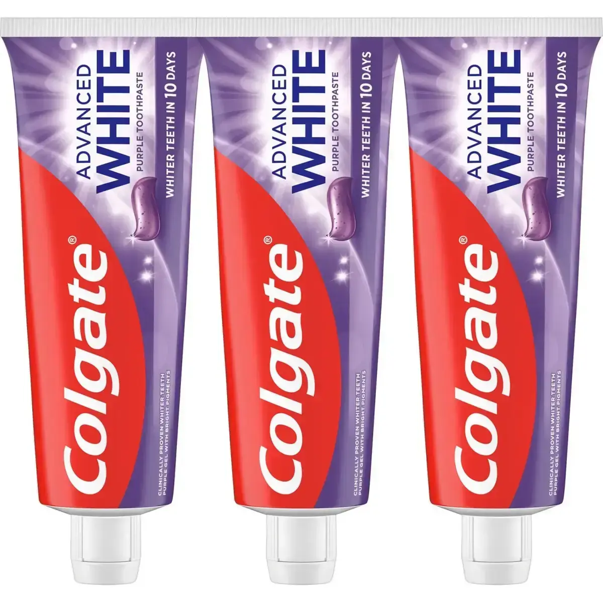 Il dentifricio Colgate Advanced White Purple Trio è un prodotto per la cura dei denti progettato per supportare l'igiene orale con un focus sull'illuminazione e la protezione dello smalto dentale. Questo dentifricio presenta una formula a tripla azione che aiuta a rimuovere le macchie superficiali, prevenire nuove macchie e rinforzare lo smalto contro l'usura quotidiana. Contiene fluoro per la prevenzione della carie ed è formulato per essere delicato sui denti sensibili, pur pulendo in modo efficace. La pasta ha una consistenza liscia e un fresco sapore di menta che lascia una sensazione di pulito e freschezza dopo l'uso. Adatta per l'uso quotidiano da parte degli adulti, è disponibile in un tubo standard da 100 ml e offre una cura orale duratura. Il prodotto è facile da applicare con uno spazzolino e si risciacqua senza residui. Il suo design compatto garantisce una pratica conservazione in bagno. Realizzato con ingredienti di alta qualità, questo dentifricio soddisfa le consuete aspettative di sicurezza ed efficacia per i prodotti per l'igiene dentale. L'uso regolare contribuisce a mantenere denti e gengive sani e supporta la salute orale generale in una routine di cura.