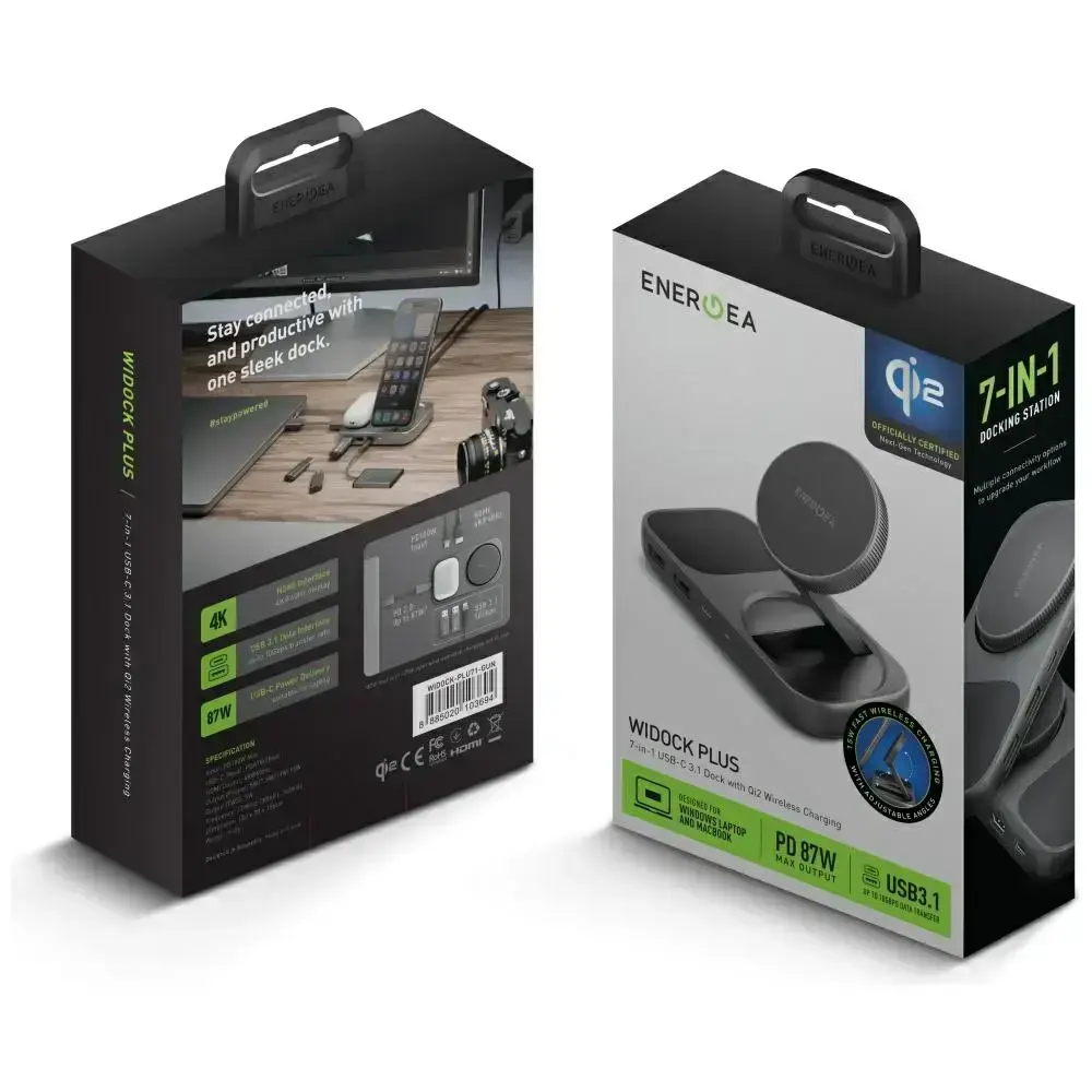 The Energea WiDock Plus 7-in-1 USB-C 3.1 with Qi2 docking station is a compact and advanced connectivity hub for laptops, tablets, and smartphones. It enables fast and safe wireless charging certified by Qi2 and compatible with MagSafe, offering power up to 15W. With seven ports in one device, it greatly increases convenience and workspace organization. Ideal for users of Windows, MacBook, Android, and iPad systems, it is a universal solution for office, home, and travel.