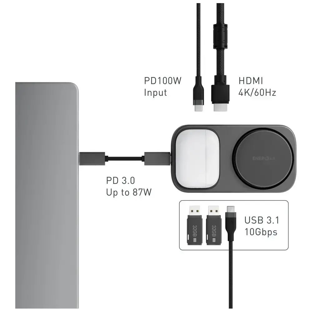 7 in 1 (1 × USB-C, 2 × USB-A, HDMI, USB-C Host, Qi2 Charging, TWS Charging)