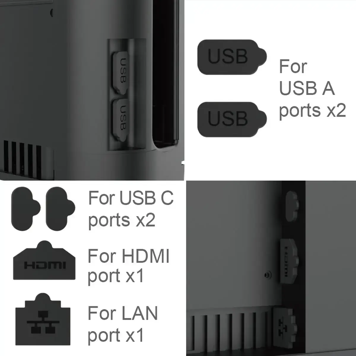 Chraňte svou herní konzoli před prachem, vlhkostí a nečistotami pomocí praktických záslepek na porty, které zabraňují zanesení a poškození nepoužívaných konektorů.