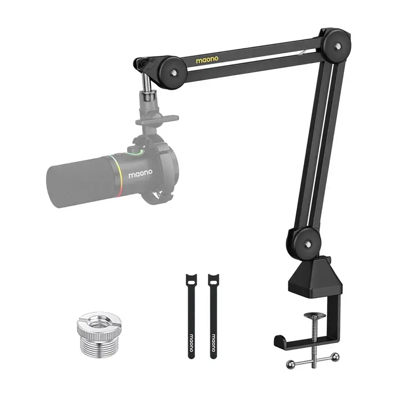 ManufacturerMaonoModelBA37CompatibilityMaono PD400X, Maono PM450, Maono PD200X, Maono PD100X, Audio-Technica AT2020, Shure SM7B, Shure MV7, HyperX QuadCast, HyperX SoloCast, Razer Seiren MiniMaximum load capacity2.5 kgArm movement range360° / 120° / 225° / 270°Arm length2 × 35 cmMounting typeC-clamp (max. tabletop thickness: 6 cm)