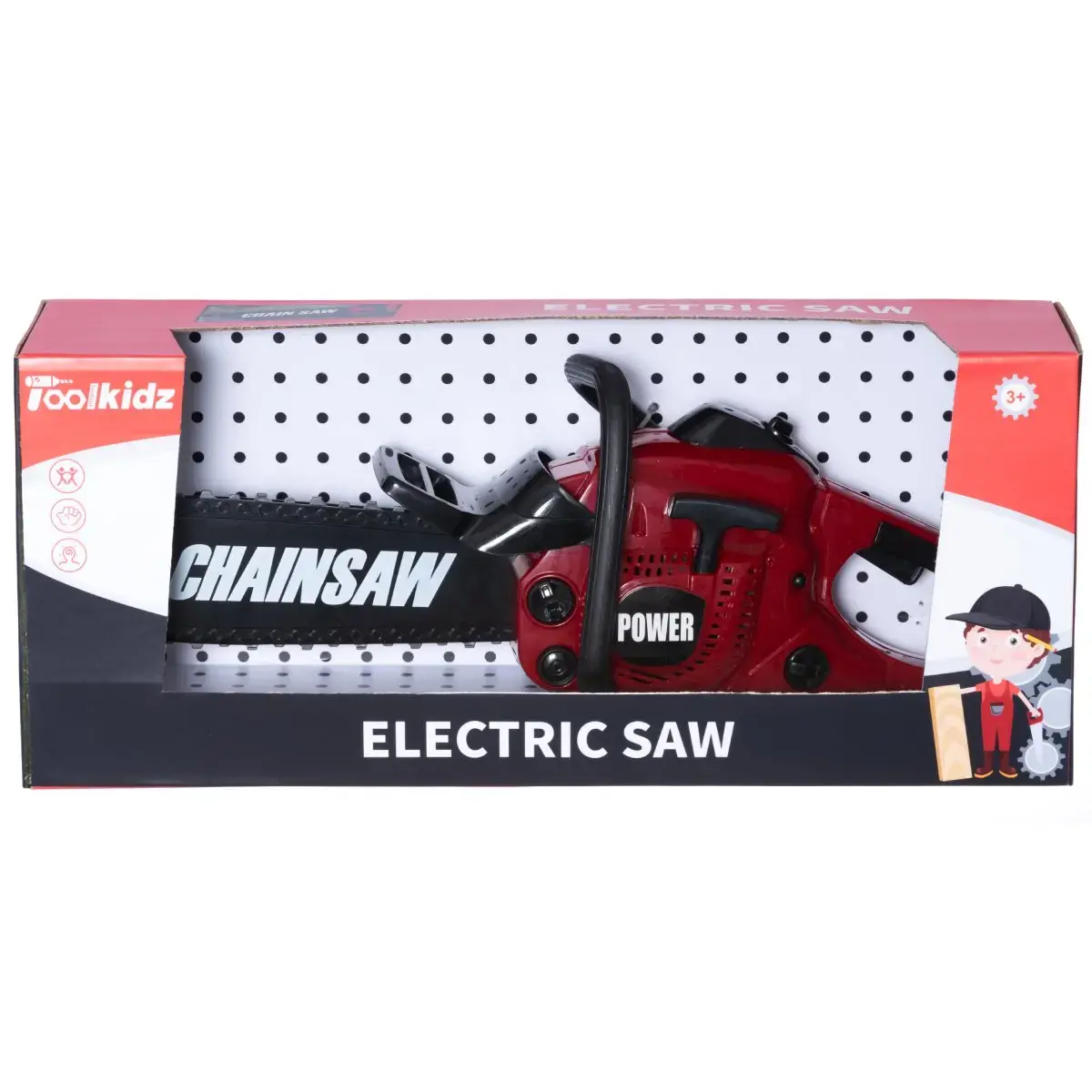 Rotaļu motorzāģis piedāvā autentiskas zāģēšanas skaņas un starta skaņu, kas padara spēlēšanos vēl reālistiskāku. Zāģim ir drošības rokturis, kas nodrošina bērna drošību spēles laikā. Darbojas ar 3 x AA baterijām (nav iekļautas komplektā). Izmērs 41.5 x 11.5 x 17.5 cm. Piemērots bērniem no 3 gadu vecuma.