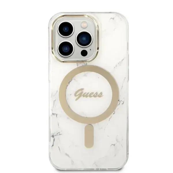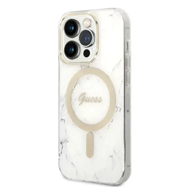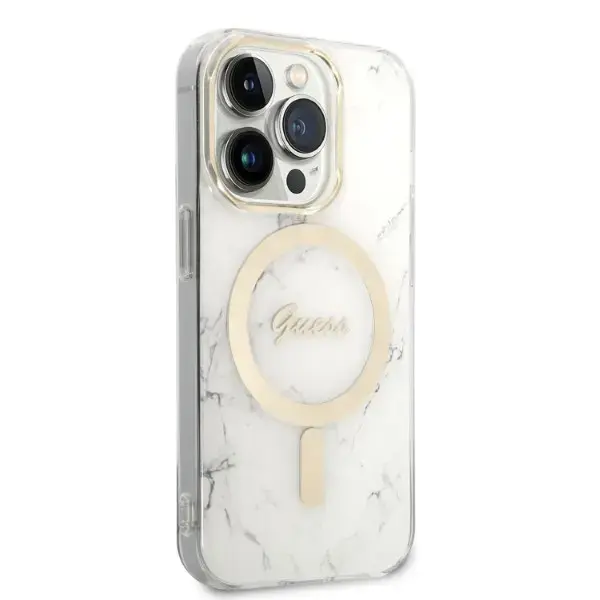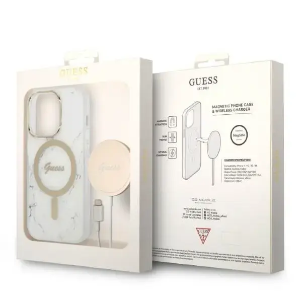 Zestaw Guess GUBPP14LHMEACSH Case+ Charger iPhone 14 Pro 6,1" biały|white hard case Marble MagSafe