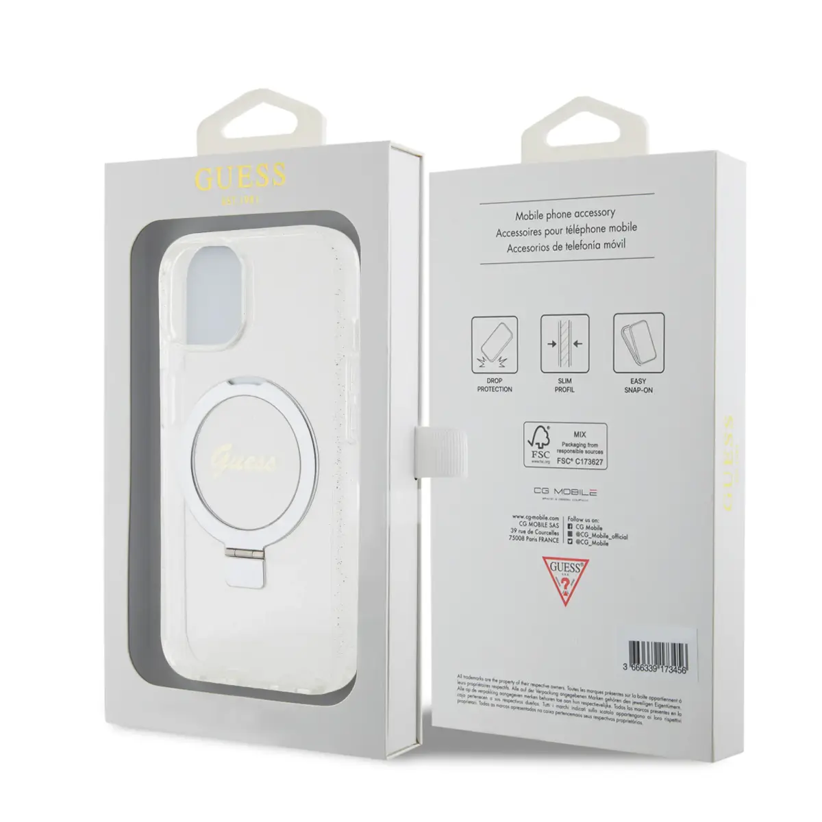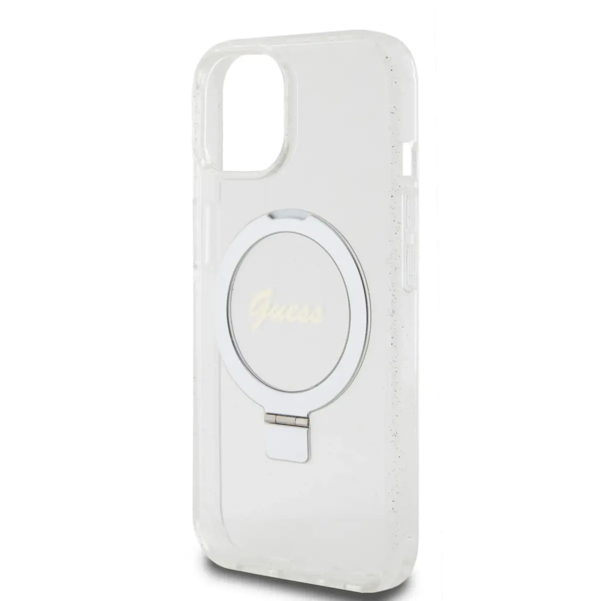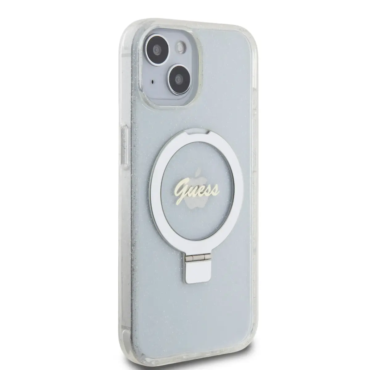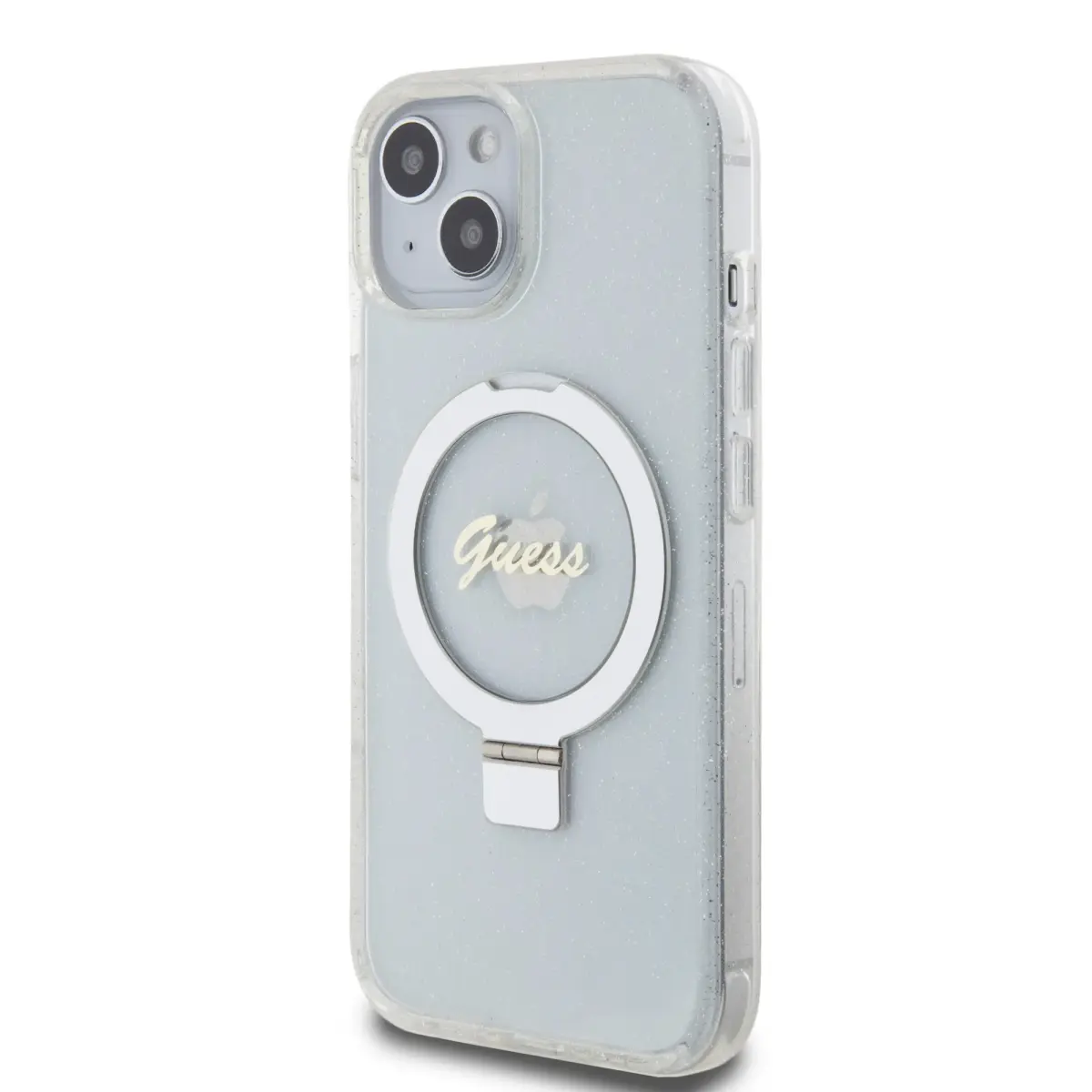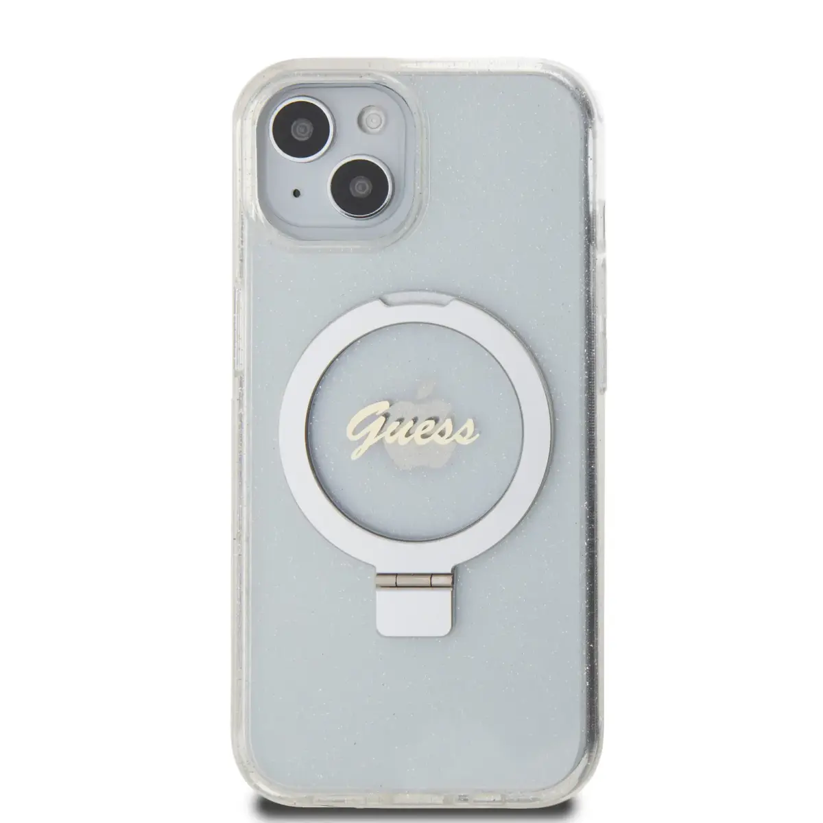 Guess IML Ring Stand Glitter MagSafe Case for iPhone 15 Transparent