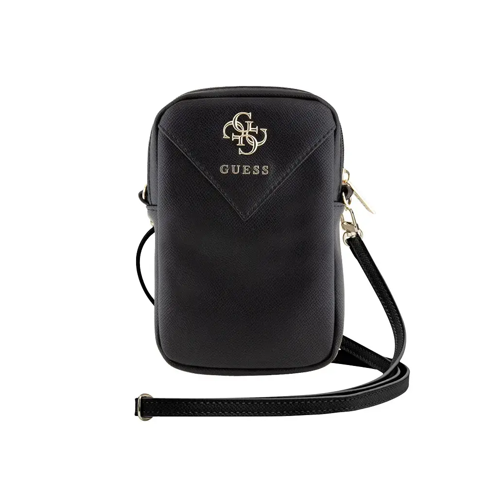 Guess PU Grained 4G Metal Logo Wallet Phone Bag Zipper Black