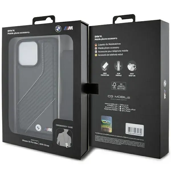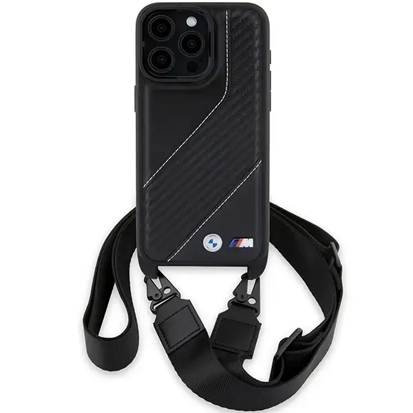 BMW BMHCP15L23PSCCK iPhone 15 Pro 6.1" czarny|black hardcase M Edition Carbon Stripe & Strap