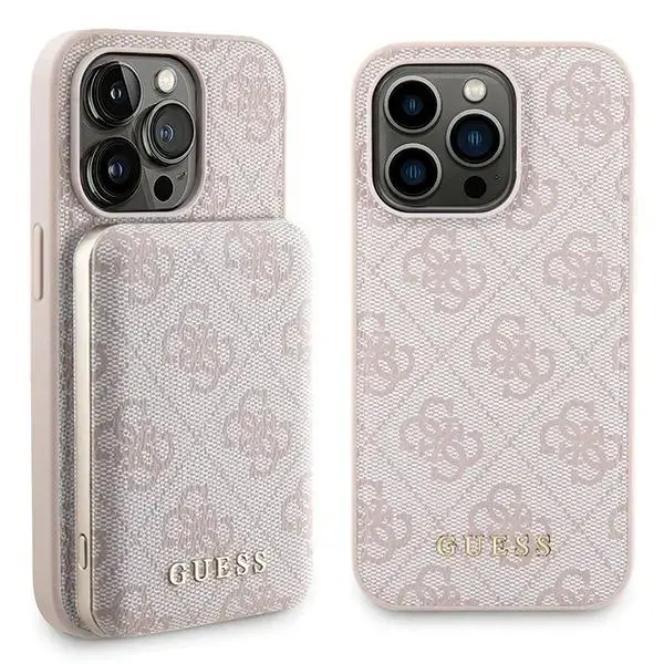 Zestaw Guess GUBPM5P14L4GEMGP iPhone 14 Pro 6.1" hardcase + Powerbank 5000mAh MagSafe różowy|pink 4G Metal Logo