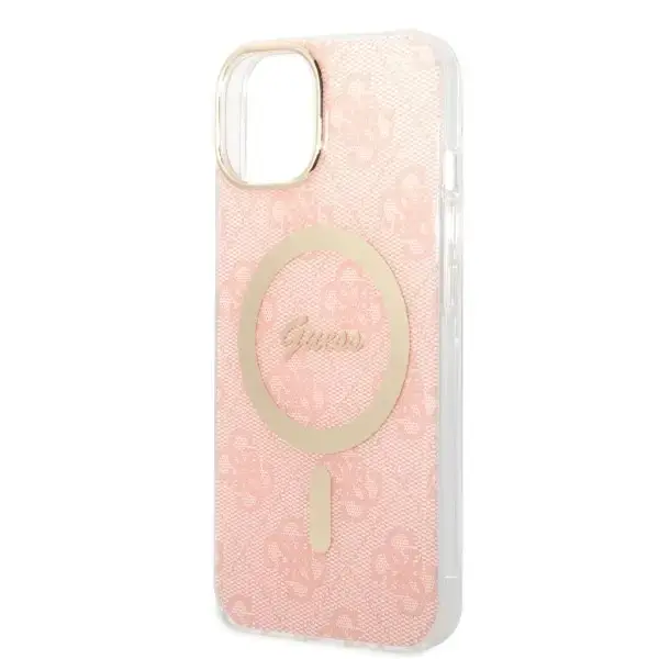 Zestaw Guess GUBPP14SH4EACSP Case+ Charger iPhone 14 | 15 | 13 6,1" różowy|pink hard case 4G Print MagSafe