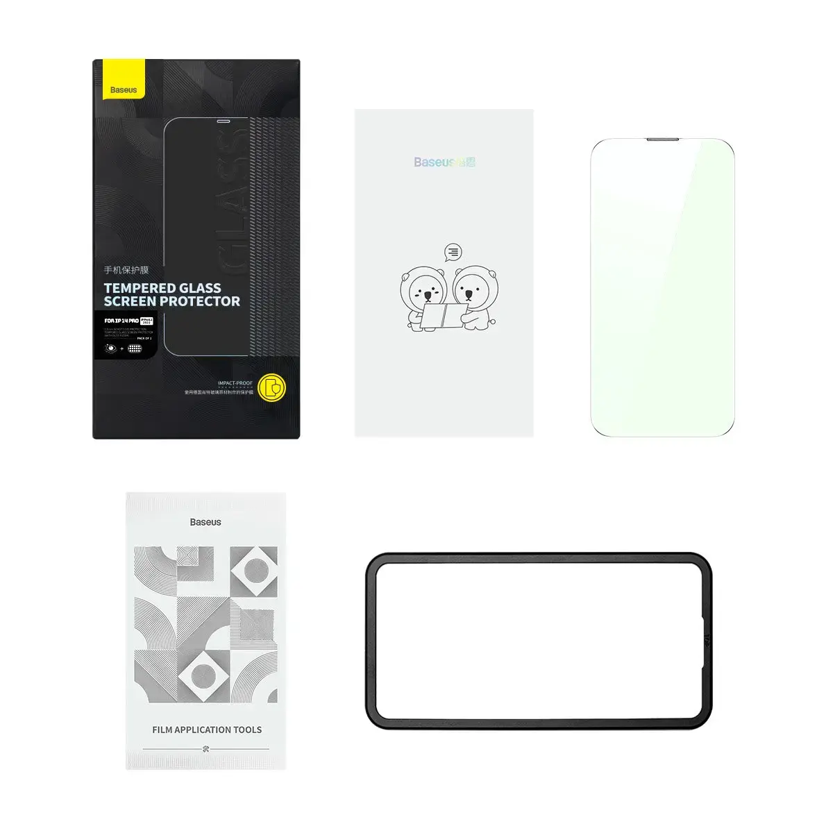 Baseus iPhone 14 Pro full screen tempered glass with speaker mesh + mounting frame
