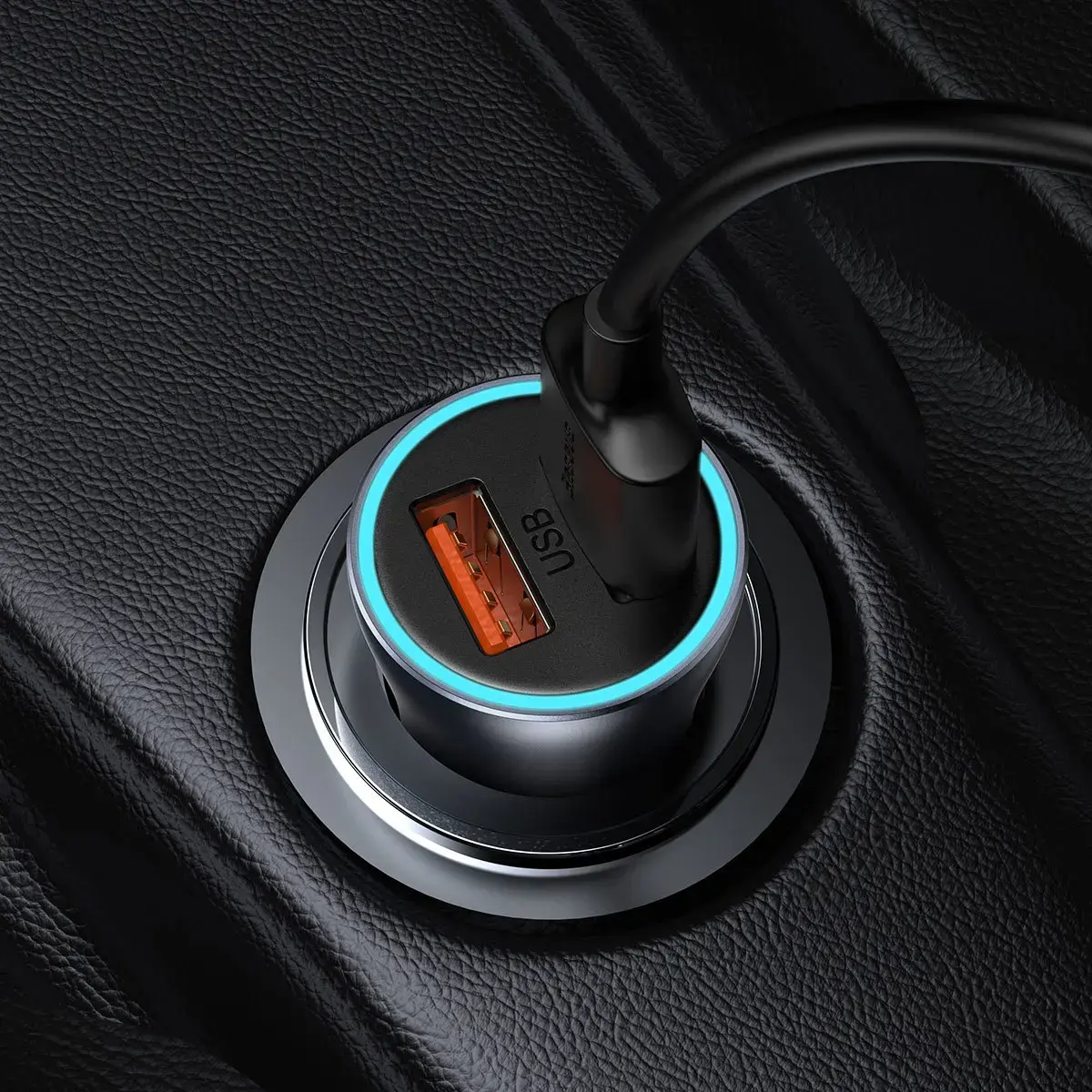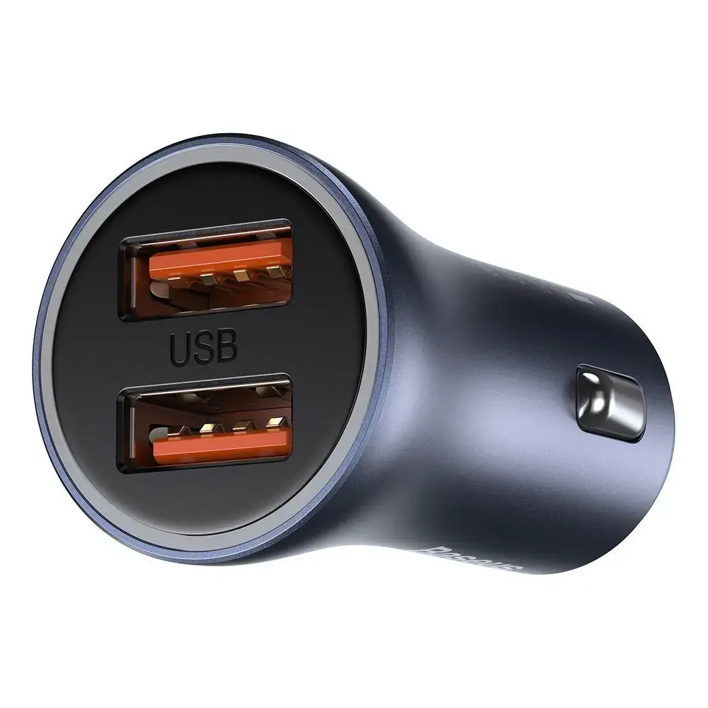 Зарядка для автомобиля Baseus Golden Contactor Pro позволяет быстро подзарядить два устройства одновременно благодаря своим двум USB-портам. Эта модель поддерживает множество протоколов быстрой зарядки, включая BPS II, что делает её идеальным решением для активных пользователей. Элегантный металлический корпус не только выглядит стильно в интерьере автомобиля, но и обеспечивает защиту от перегрева.