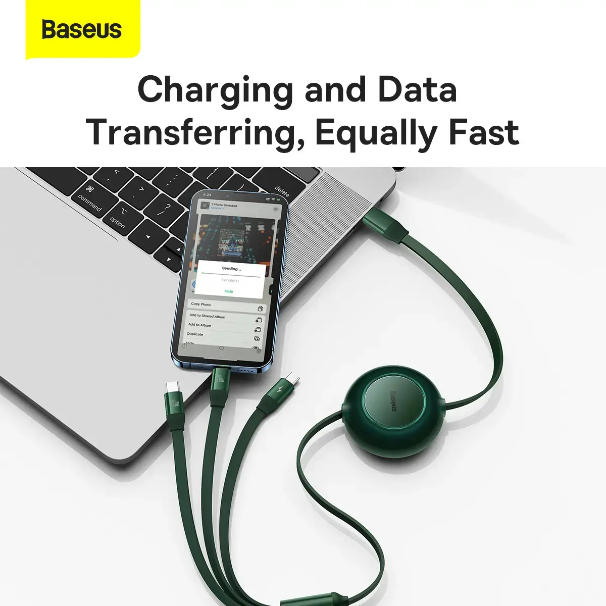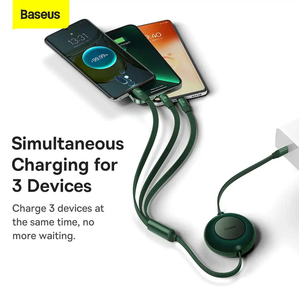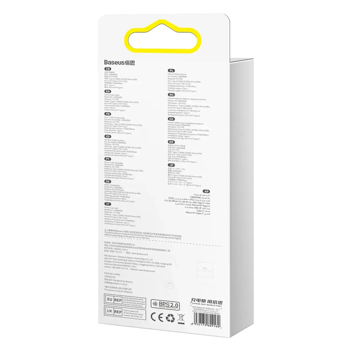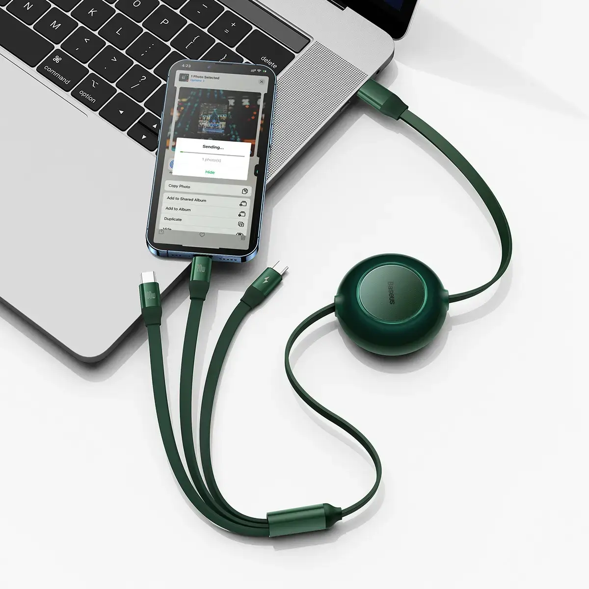 Провод Baseus Bright Mirror 4 3-в-1 — это идеальное решение для зарядки и передачи данных, совместимое с телефонами и планшетами. Благодаря универсальным выходам USB-C, Lightning и Micro USB, вы сможете подключать различные устройства, включая iPhone и iPad. Провод обеспечивает быструю зарядку мощностью до 100W, что позволяет зарядить ваш MacBook Pro всего за 2 часа. Кроме того, с поддержкой быстрой зарядки Apple на 20W, ваш iPhone 13 может быть заряжен до 60% всего за 30 минут. Компактный и выдвижной дизайн делает его удобным для хранения и транспортировки, а возможность подключения трех устройств одновременно обеспечивает максимальную функциональность. Встроенный чип защищает ваши устройства от перегрева, а скорость передачи данных через Lightning достигает 480 Mbps.