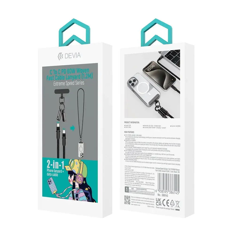 Devia lanyard провод для передачи данных и зарядки | USB-C на USB-C | 60W | 1.2m | черный