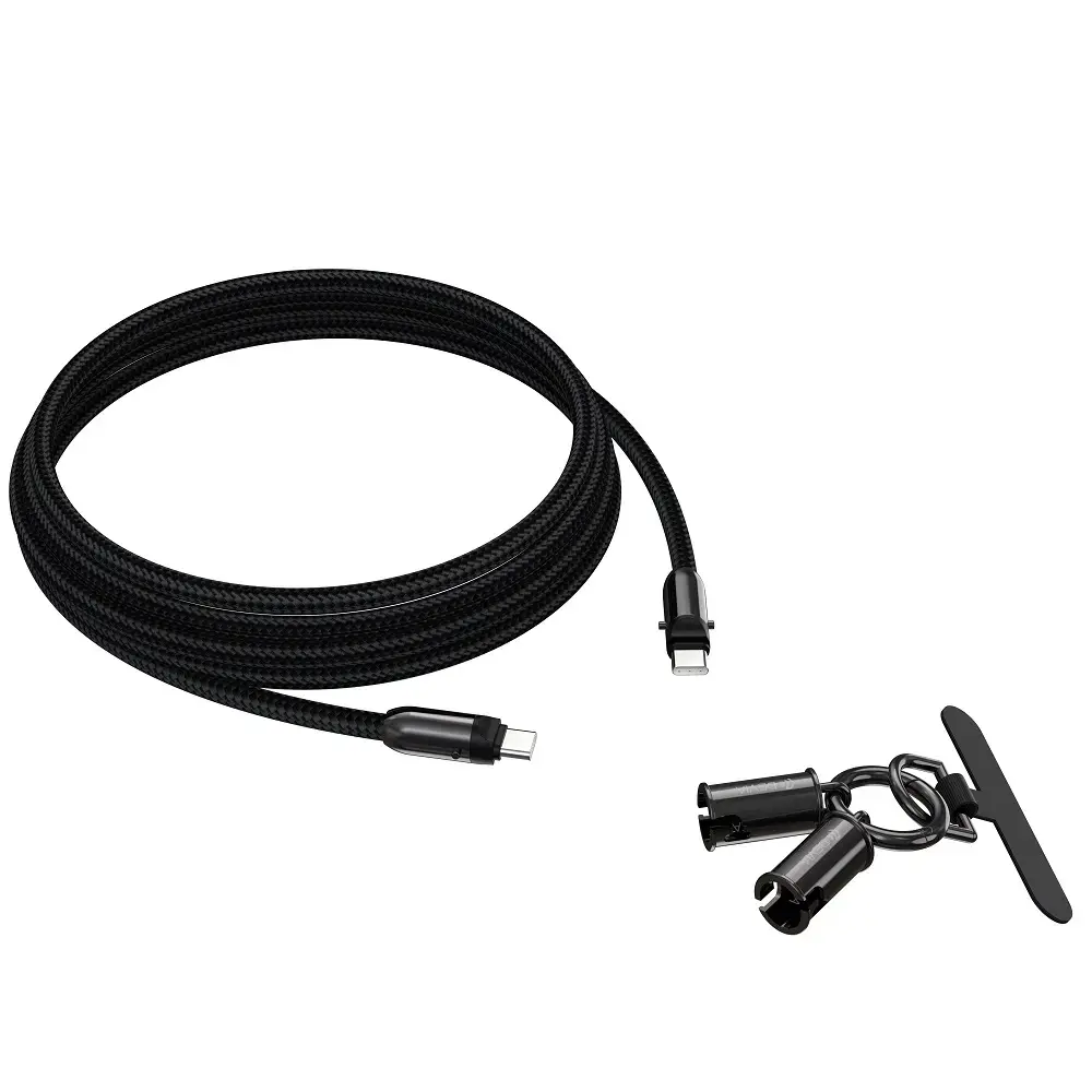 Хотите всегда иметь под рукой кабель для зарядки или передачи данных? С кабелем 2 в 1 от Devi это стало возможным! Этот уникальный провод оснащен прочным зажимом, который позволяет легко трансформировать обычный кабель в удобную шлейку с карабином. Конструкция зажима надежна, что исключает риск случайного разъединения во время ношения. В комплекте идет специальная подвеска для крепления телефона. Кабель выполнен из прочного нейлонового материала, который обеспечивает долговечность. Благодаря специальной оболочке, провод не запутывается и не ломается. Идеально подходит для зарядки и передачи данных на современных смартфонах и планшетах. Доступен в черном и лавандовом цветах.