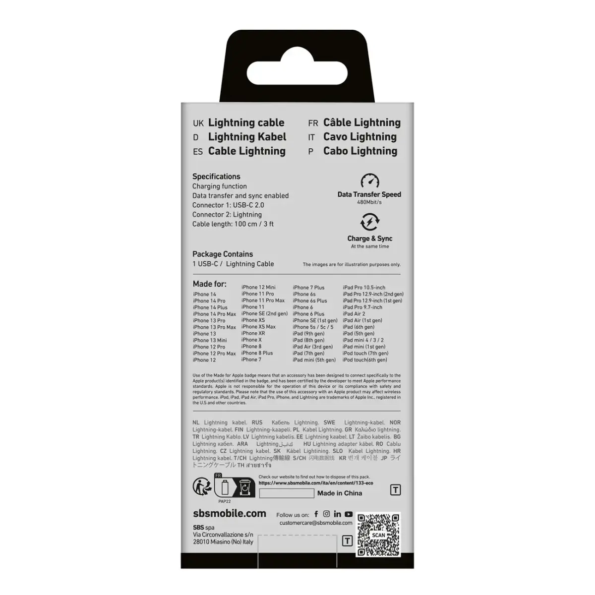 провод для передачи данных и зарядки | USB-C на Lightning | 1m | черный
