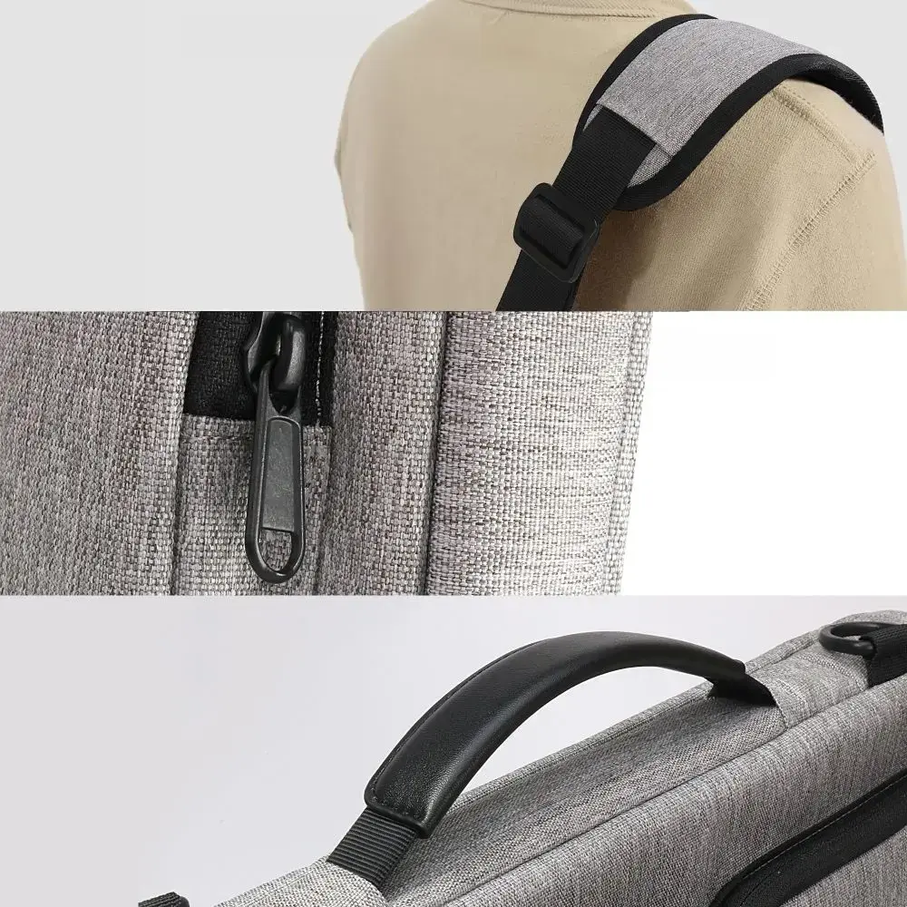 The thoughtful storage layout includes four practical pockets: a main compartment lined with soft plush to protect your laptop from scratches, a rear document pocket and two front zippered pockets, ideal for accessories, charger or other small items. With its elegant design and durable materials, the bag fits perfectly into your everyday style, while ensuring reliability in any situation.