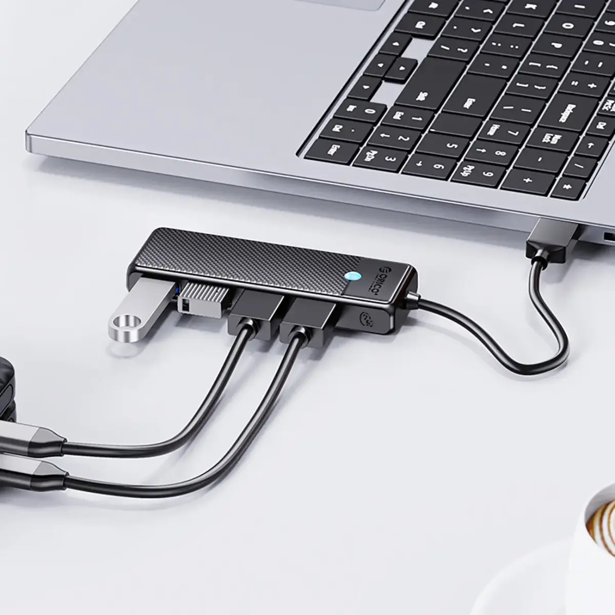 The elegant appearance and compact dimensions of the Orico PAPW4A-C3 make the hub fit perfectly into any office or home interior. Thanks to its size, it is easy to carry and does not take up much space, making it an ideal choice for mobile work.