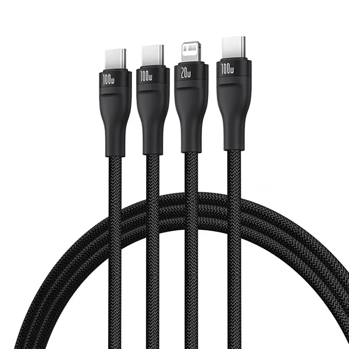 Кабель Baseus Flash Series 3 3-в-1 — это идеальное решение для зарядки и передачи данных, совместимое с большинством современных смартфонов и планшетов. Поддержка мощности до 100W позволяет быстро заряжать устройства, включая ноутбуки, всего за 2 часа. Благодаря длине 1.5м и трем разъемам (два USB-C и один Lightning) вы сможете одновременно подключать и заряжать несколько устройств, что делает его незаменимым аксессуаром для активных пользователей.