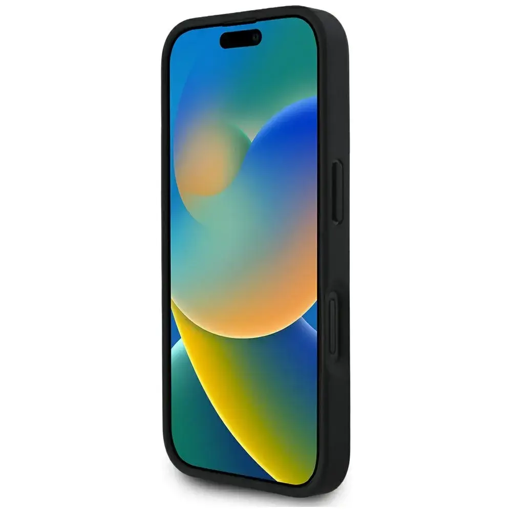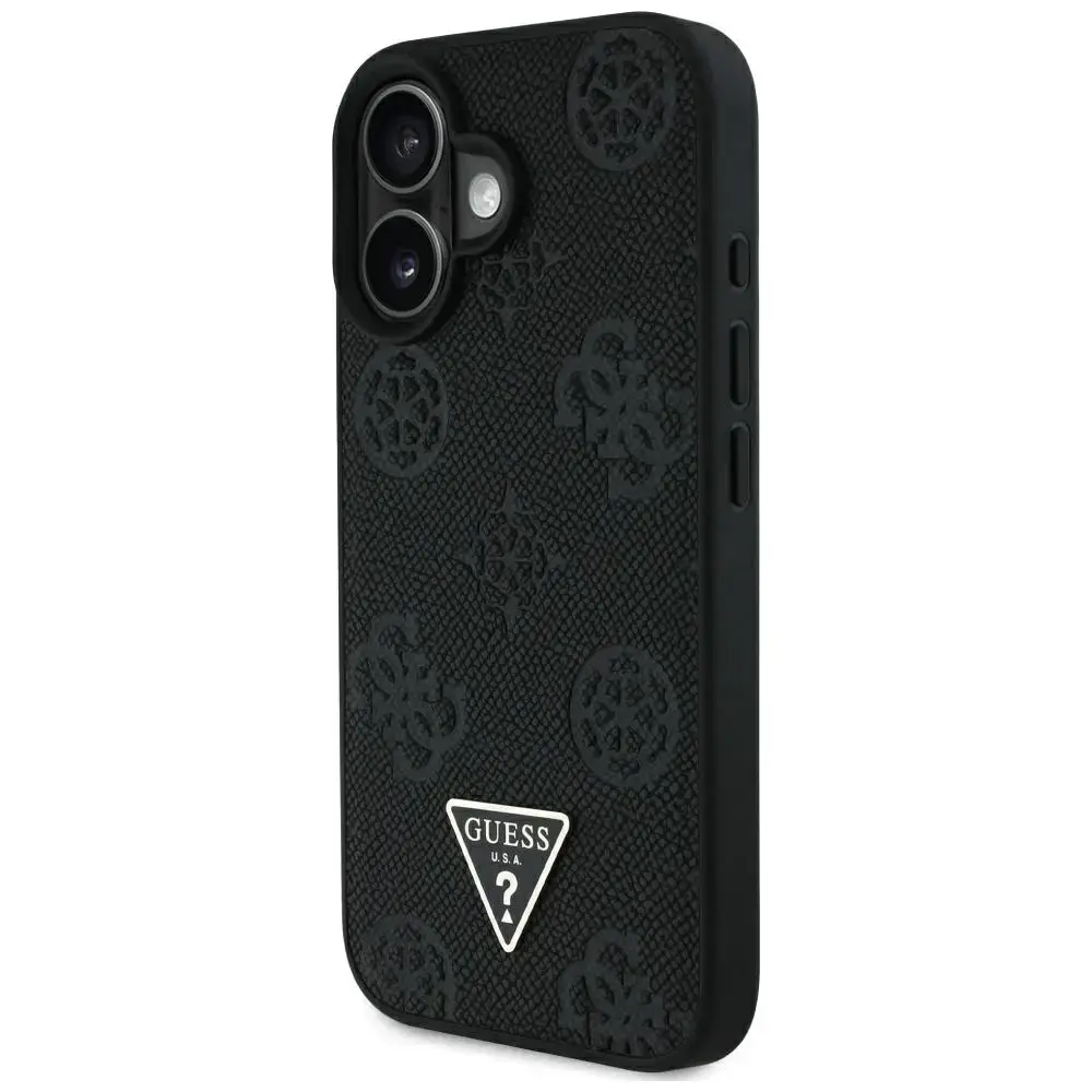 Чехол для телефона Guess Grained Hot Stamp Peony Triangle Logo MagSafe для iPhone 16 черный