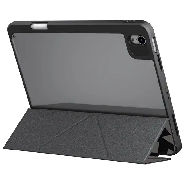 The case features a detachable Y-fold cover, allowing the iPad to be positioned in both horizontal and vertical modes. This makes hands-free use convenient – the perfect solution for watching movies or working. The magnetic closure ensures stability and security, while the built-in slot for the Apple Pencil makes stylus storage easy.