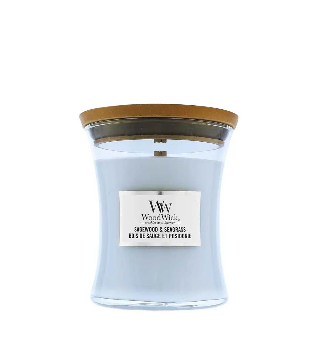 WoodWick Sagewood & Seagrass scented candle with wooden wick 275 g